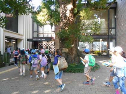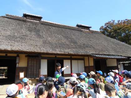 絶好の秋晴れのもと、3年生は世田谷の歴史や文化を学ぶ社会科見学に行ってきました。郷土資料館では、学芸員の先生に昔の道具を詳しく教えていただきました。次に訪れた次太夫堀公園民家園では、かやぶき屋根の家に上がって家のつくりを体感しました。最後の世田谷市場では、せり台に上がって、指を使ってのせりの経験もさせていただきました。