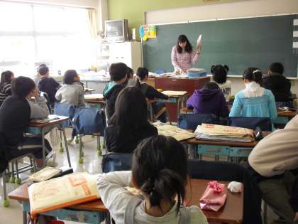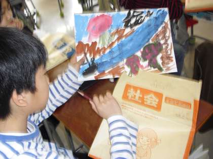 4年生は、掲示してあった3学期の学習のプリントを配布していました。教科“日本語”で学習した漢詩を見せてくれまhした。