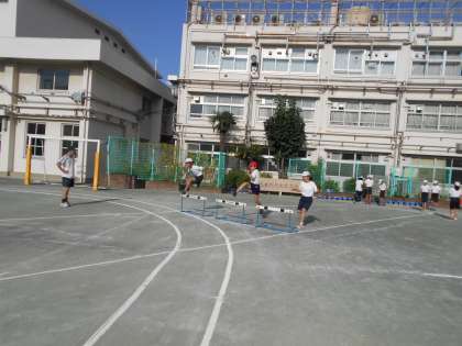 6年生は、10月28日の連合運動会に向けて、ハードルや幅跳びなどの陸上競技の朝練習に取り組んでいます。担任以外の教員も指導しています。また、練習前にラインを引いたり、砂場を整備する教員もいます。全教職員で学校のリーダーの6年生の練習を支えています。