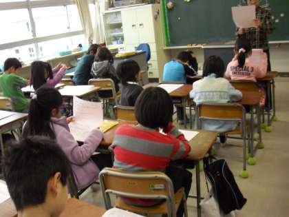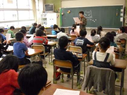 2年生の教室では、“学級指導”春休みの過ごし方や担任の先生自身のお話をしていました。真剣に聞く姿に3年生になるという意気込みを感じました。