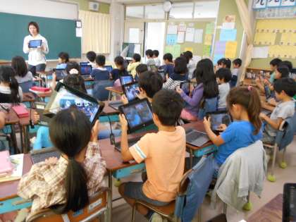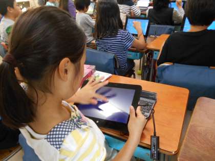 2学期に世田谷の全小中学校にタブレットパソコンが入りました。早速、3年生はタブレットを使っての写真の撮り方を練習しました。
