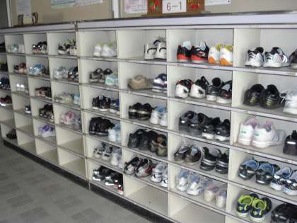 九品仏小の靴箱の入れ方は、入船形に“きちんと入れる”・・・いい伝統が続いています。平成22年度始めって・・・3日目ですが、画面の通りです。新1年生も上級生と同じようにきちんと入れています。