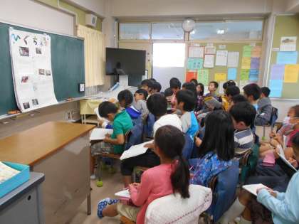 3年生は社会科の学習で取り組んだ九品仏商店会のお店調べのポスターセッションを行いました。友達の発表を聞き、気付いたことをしっかりノートに書きとめていました。
