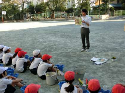 植物に詳しい副校長先生から、パンジーのこと、植えかえ方、世話の仕方を教えていただきました。