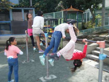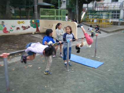休み時間もたくさんの子供たちが鉄棒運動に取り組んでいます。