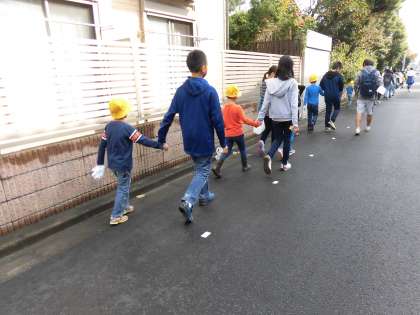 地域清掃や学校から活動場所への移動は、たてわり班で活動しました。