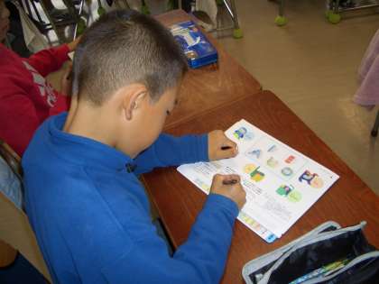 1時間目は、“国語の学習”授業や調べ学習などで、パソコンを使うため、ローマ字学習帳を配布していました。