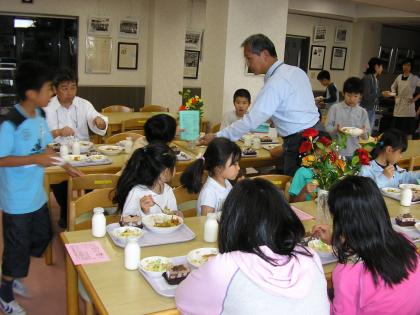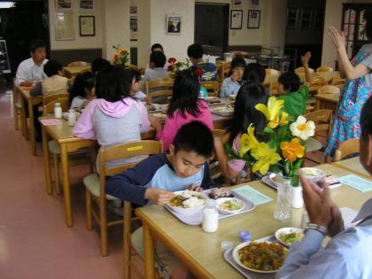 今日は、6月のお誕生日給食の日でした。メニューは、カレーライス、サラダ、牛乳と、ケーキでした。6月生まれはランチルームに集まって、デザートのケーキまでおいしく食べ、カレーライスをおかわりした子どももたくさんいました。
