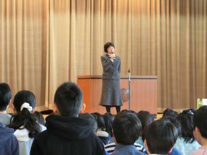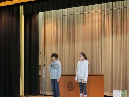 式の終わりに児童代表の言葉を5年生が発表してくれました。2学期がんばったことや、残り3ヶ月となった5年生としての目標などを立派に発表していました。