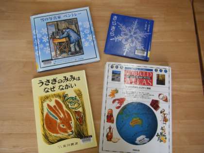 今日は、冬にぴったりな雪の結晶についての絵本や子どもたちが大好きな動物についての絵本でした。