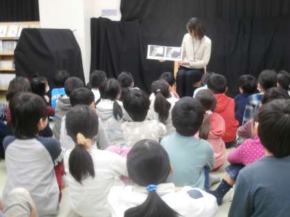 今日はLアンLの読み聞かせです。「ホレおばさん」の素話と「くまのビィーディーくん」「100まんびきのねこ」の読み聞かせでした。