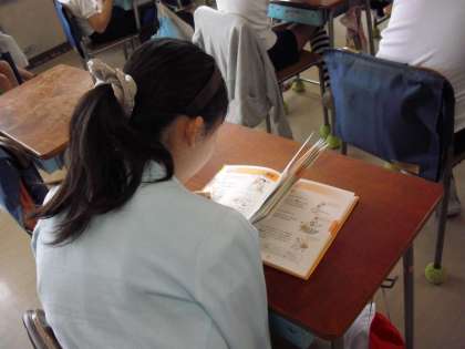 5年生の教室では、“朝 読書”をしていました。真剣に本を読んでいました。