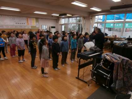 渡辺先生には、地声を出さないきれいな声の出し方と歌い方を指導していただきました。2年生は歌うのが大好きで、とてもきれいな声で歌えるようになり、