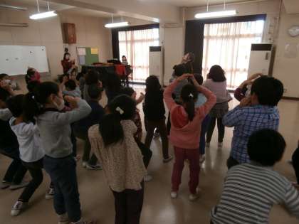 2年生は3月9日に渡辺陸雄先生に声の出し方を教えていただき、3月10日にはリトミックの学習をしました。