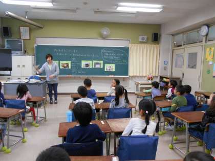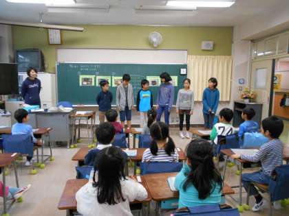 今日は朝から雨でした。玄関で戸惑っている1年生を上級生が教室まで案内しました。1年生の教室では当番の6年生がランドセルの片付けなどを一人一人にやさしく教えていました。