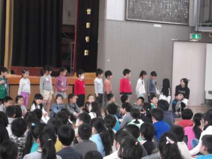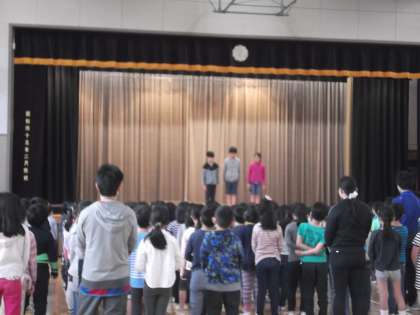 入学して4日目。少しずつ学校に慣れてきたようです。今朝の1年生を迎える会では、1年生の一人一人が元気よく自分の名前を言いました。上級生は「はじめの一歩」の歌で歓迎しました。代表委員のみんなが上手に会を進めてくれました。