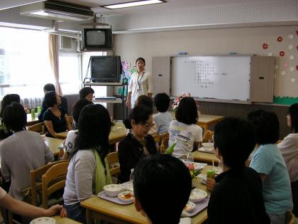 6月24日(火)午前11:00より、第1回家庭教育学級「食育−安心・安全な学校給食」について研修会が行われました。社会指導員の中島先生をお迎えして、本校の栄養士さんを講師に行いました。安全規定に沿った食材を使用していること、食材の一部を冷蔵庫に2週間保存しておくこと、管理職が「検食」をすること、子どもの口に入るまで、何十にも安全を確認していることなどに・・、一食あたりの金額がわずかなのに、様々な工夫をしていること、アレルギー対応もしていることなど、驚きと共に感謝の声をたくさんききました。特に、今回は、日常の調理作業のビデオを見ることができ、調理員さんの仕事ぶりを見ることができました。保護者の方から、家でも工夫してみようなどの声があがりました。