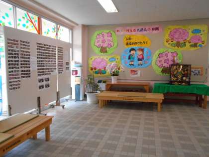 入学式の写真を学校の玄関に掲示しました。夕方や休日でもご覧いただけます。2年生の歓迎の演奏の写真もあります。