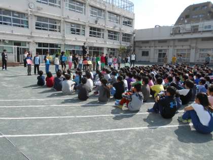 朝会で、たてわり班長と副班長の紹介がありました。頼もしい6年生ばかりです。5月2日の全校遠足は、たてわり班で助け合って行動します。5・6年生は朝会の後に行進の練習をして教室に入ります。