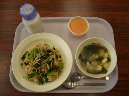 今日の献立は、ビビンバ、牛乳、わかめスープ、シャロットゼリーで、今日も栄養満点です。おいしくいただきました。