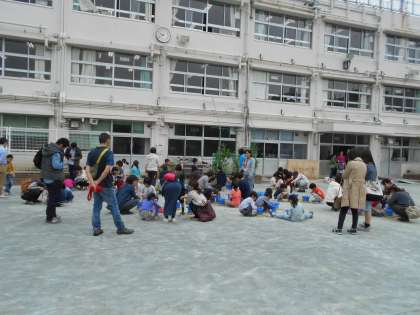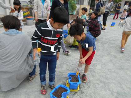 月1回の土曜授業日です。1年生はあさがおの種まきをしました。おうちのひとが見守る中、楽しそうに活動していました。