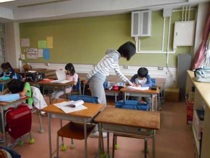 毎週、月曜日と木曜日に放課後学習を算数教室で開催しています。3年生〜6年生が対象で、宿題など自分がやりたい課題に取り組みます。