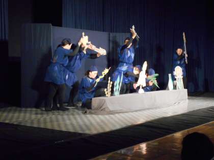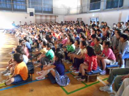 体育館が劇場に早変わりして、全校児童で劇を見ました。