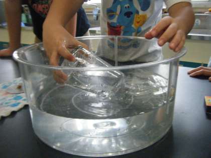 「水の中なら空気が見えるよ」お風呂の中で洗面器を使って遊んだ経験から見つけました。