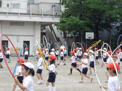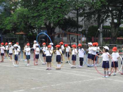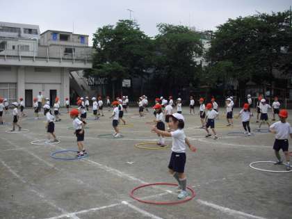 1・2年生の運動会の練習の様子です。1、2年生は、“輪をつかって”の表現です。