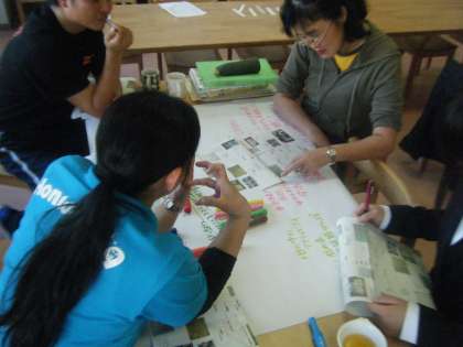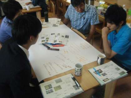 少し難しいテーマを「ワールドカフェ」という会議の手法で話し合いました。リラックスした雰囲気で、話したことを思いのままに模造紙に書き留めました。