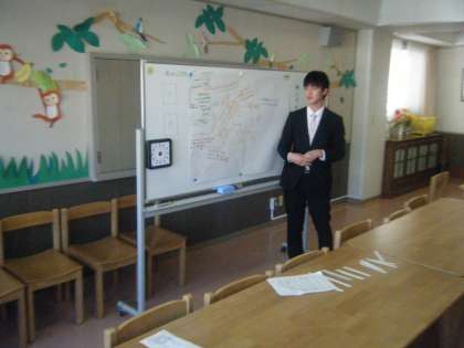 月曜日から来ている教育実習生2名も参加しました。たくさんの先生と話すことができ、よい機会になりました。