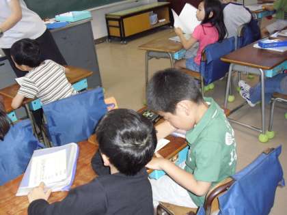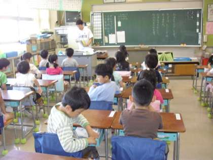 1年生の教室では、欠席連絡帳の確認を担任の先生から、子どもたちに確認していました。天候不順が続いて、子どもたちも体調を整えるのが大変そうです。