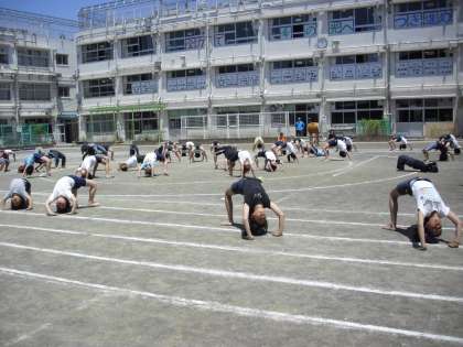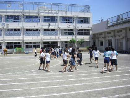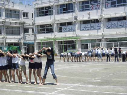 高学年(5・6年生)は、団体競技の騎馬戦と組体操のリハーサルをしました。