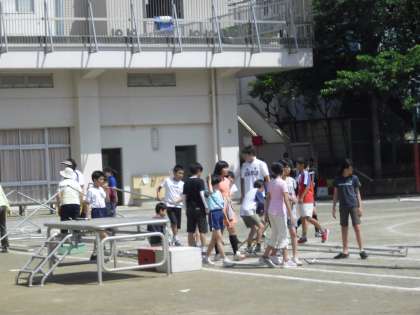 今日の午後は、教職員と高学年の児童と運動会前日準備です。