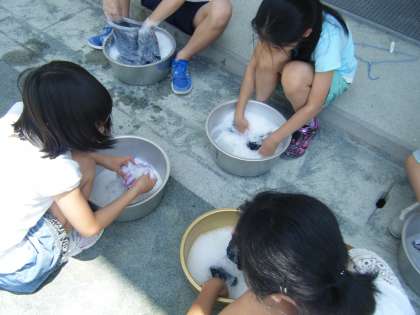 手洗いで汚れがきれいになることを学ぶことができたので、これからは、自分の洗濯物が汚れていたら、手洗いしてから洗濯機に入れると良いと声をかけました。