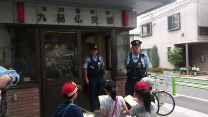 九品仏商店街にあるいろいろな店や、交番、浄真寺などに見学に行きインタビューをしました。