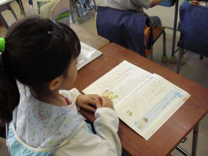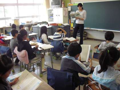 2年生の教室では、“国語の学習”教科書を読みながら説明していました。子ども達も真剣に聞いていました。