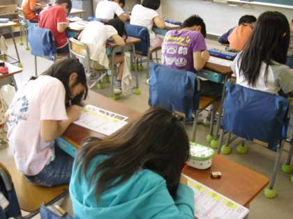 3年生の教室では、“国語:漢字練習”新しい漢字の学習をしていました。字の形や筆順、使い方など・・・丁寧に書いていました。