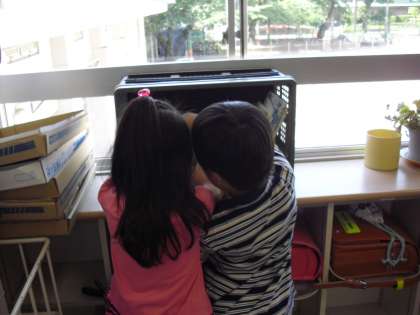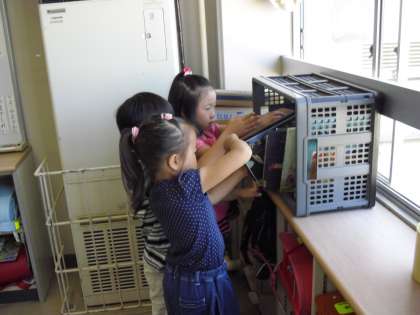 1年生の教室では、“係活動”を自主的に行っていました。担任の先生に褒められていました。褒められた子ども達は、にこにこ笑顔でした。