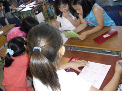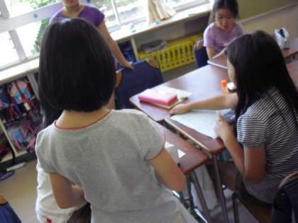4年生の教室では、朝の会の前に・・・係活動の反省をグループごとにしていました・