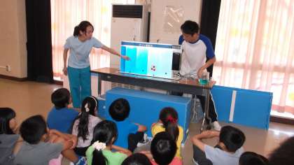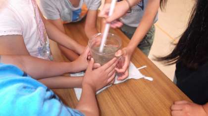 「水道キャラバン」の出前授業がありました。東京都水道局の取組について、前半では、動画や寸劇を活用して、水道水源林から家庭もで水が届く経過や、江戸時代から始まる水道の歴史を学びました。後半は、実際に実験することで、濁った水がきれいになる仕組みを擬似体験しました。