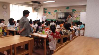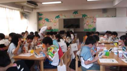 校医の高見澤先生に、歯肉炎について詳しく教えていただきました。その後、実際に、歯の染め出しをして、正しい歯磨きの仕方を学びました。