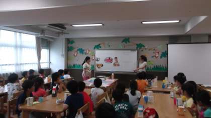 むし歯になりやすいお菓子について学習し、たくさんの砂糖が使われていることに驚いていました。その後、歯の染めだしをして、上手な歯みがきの仕方を練習しました。