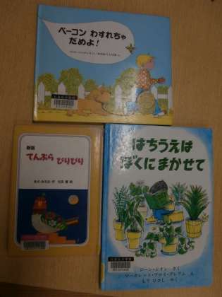 今日は今学期最後のLアンL読み聞かせでした。詩「一ばん星」、素話「七羽のカラス」と「ベーコン忘れちゃだめよ」、「はちうえはぼくにまかせて」の読み聞かせでした。