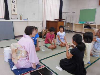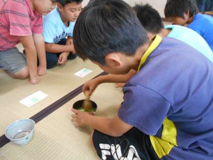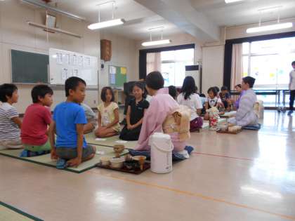茶道教室の1回目は3・4・5年生が参加しました。「甘いお菓子を食べた後のお茶はとてもおいしかった。」、「毎年参加しています。」と4年生が感想を聞かせてくれました。