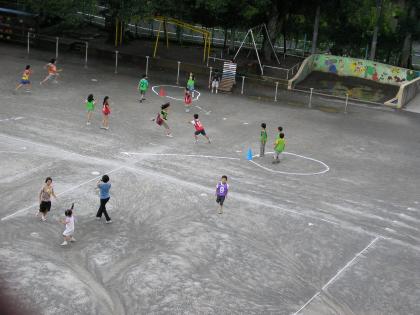 今月のたてわり班担当は5年生でした。昼休みには雨が上がり、各班ごとに体育館や校庭、学習室、屋上などを使って楽しく遊びました。