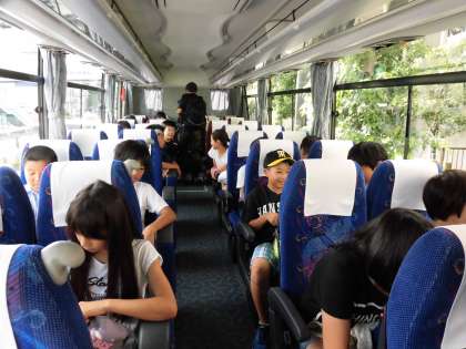 学校を出発して、バスは日光を目指して東北道を走ります。車中では楽しいバスレクが繰り広げられています。具合が悪い子どももいません。