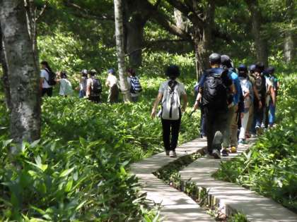 湯滝から小田代ヶ原に向けて木道を歩きました。6年生はすれ違う方々に自分からあいさつをしていました。よく整備された道で気持ちよく進むことができました。