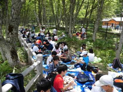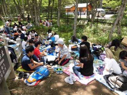 小田代ヶ原の展望台で昼食をとりました。みんなが心をそろえて歩いたため、予定より早めにごはんを食べることができました。