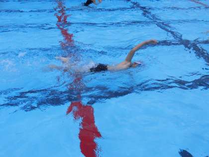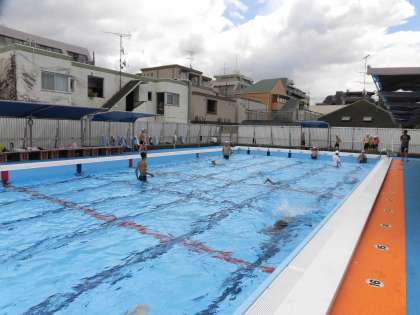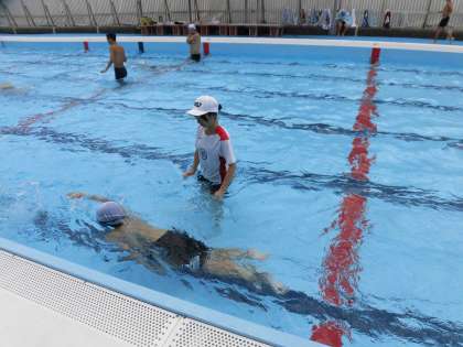 今日は水温も気温も基準より高く水泳日和です。中学年はフォームを意識して練習していました。